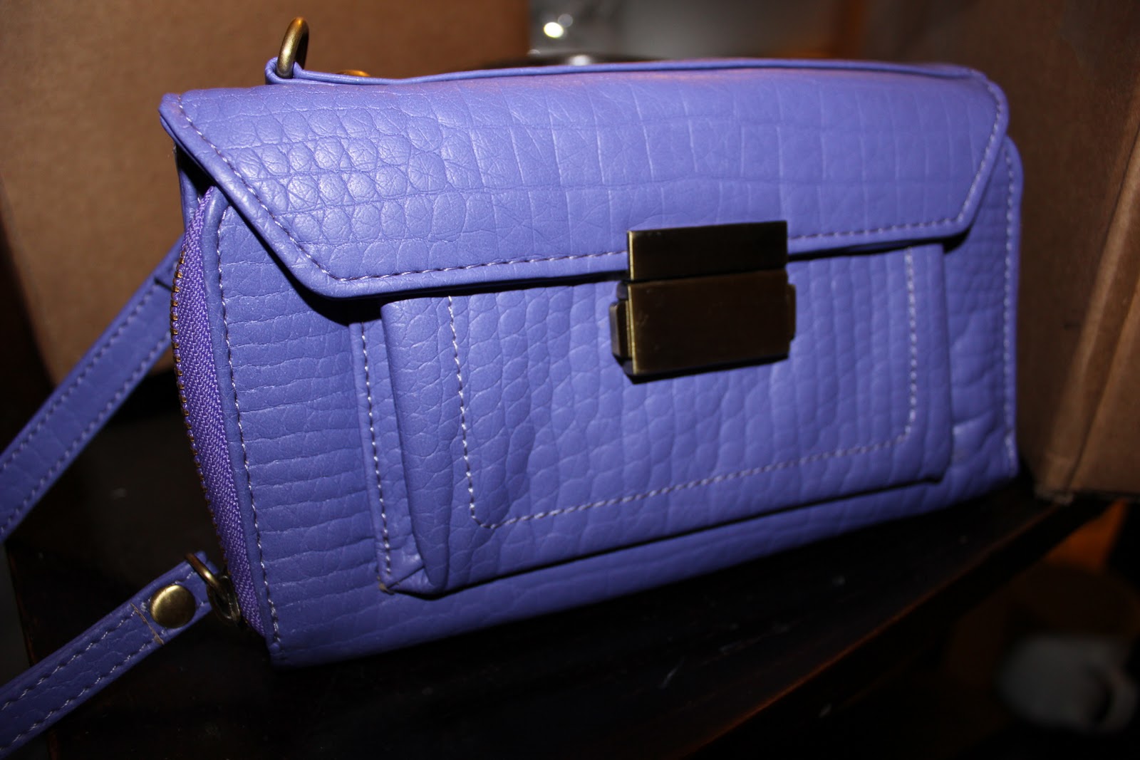 Today I came home from school hoping my package from Urban had arrived, unfortunately it hadn't...until around 7 when I decided to check the status of where my package was. When I looked on UPS.com, it said it was on my doorstep. So, I ran outside and found the poor package in the cold. I grabbed it immediately and ran inside. I got my camera and decided I had to record this momentous occasion. Let me introduce you to the two newest members to my family, my beautiful lilac wallet/ cellphone carrier and the most comfortable and go with anything booties.