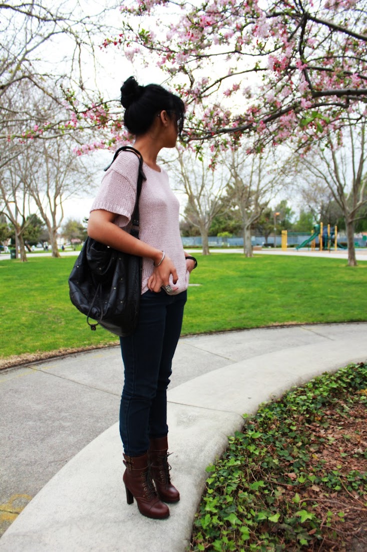 Sweater: H&M($17), Jeans: Marshall's($15), Shoes: Dolce Vita($76), Bag: Target($20), Bangles: India(Price Unknown), Knuckle Ring: Target($8), Awesome Nail Polish: Forever21($3)